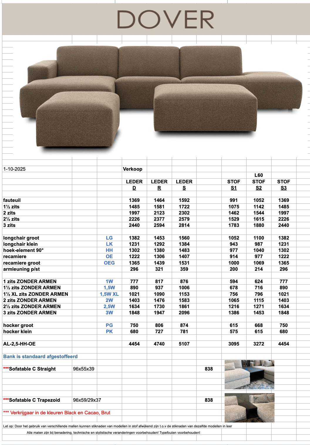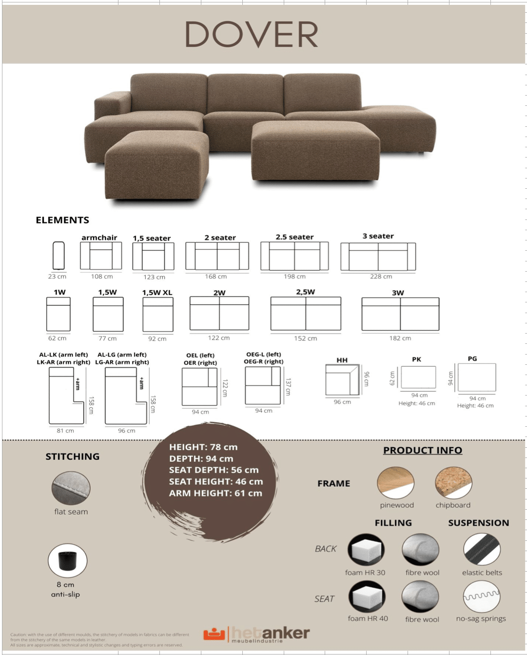 Bank Dover is te verkrijgen in meer dan 200 verschillende stoffen en leder.