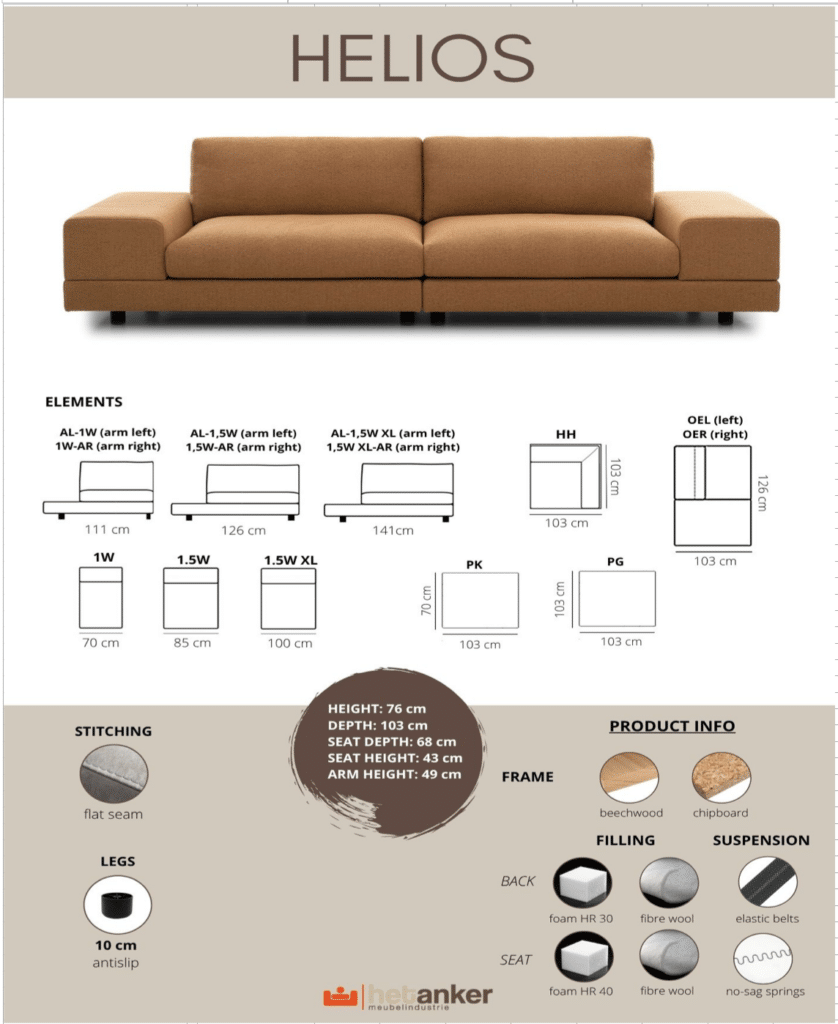 Bank Helios is compleet samen te stellen met verschillende elementen.