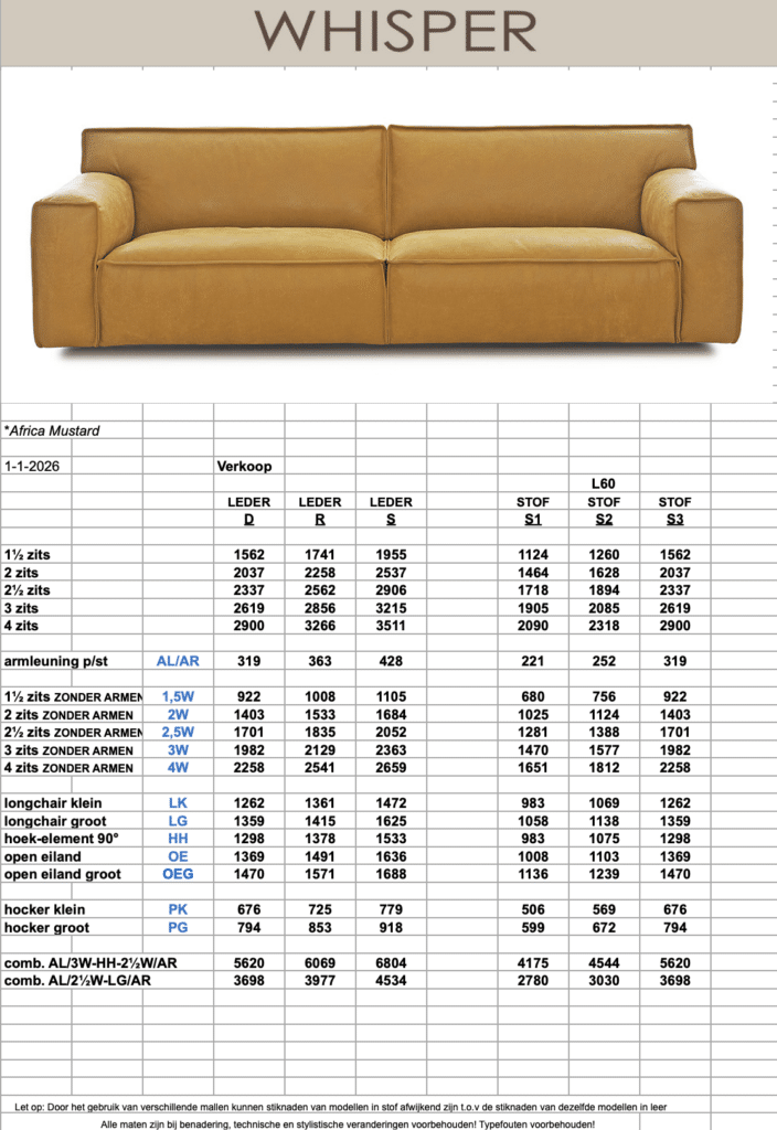 Bank Whisper 2 zitter ALR is er vanaf € 1464,-